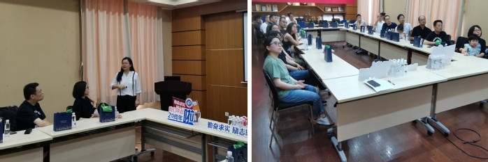 在实验一楼第一会议室,袁媛代表全院师生热烈欢迎校友返校,对于校友们对学院发展的关心与支持表示衷心感谢!从学科建设、教学科研、人才队伍、学生培养、先进材料大楼建设等方面介绍了学院近些年来的发展情况。最后向校友们表达了衷心的祝福,她表示学院将推进资源整合,搭建交流平台,更好地服务校友发展,凝聚校友力量,欢迎校友们常回家看看。