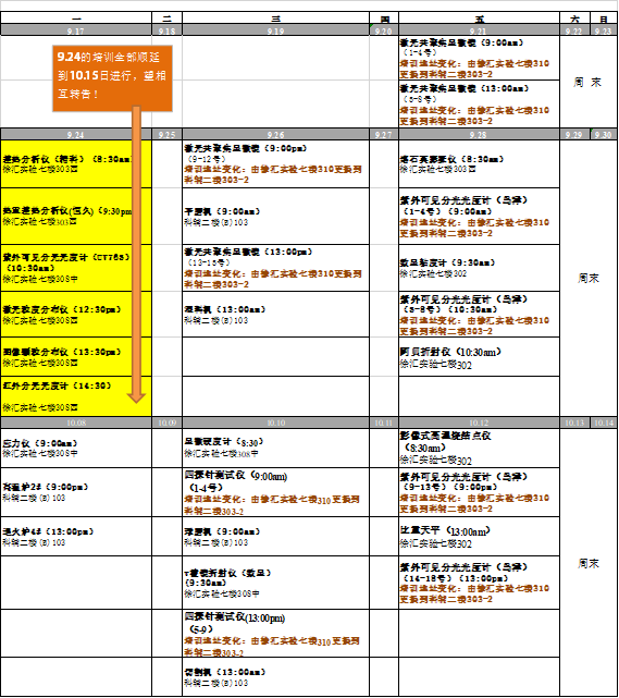 【实验中心】2018年下半年仪器设备培训安排表及分组名单