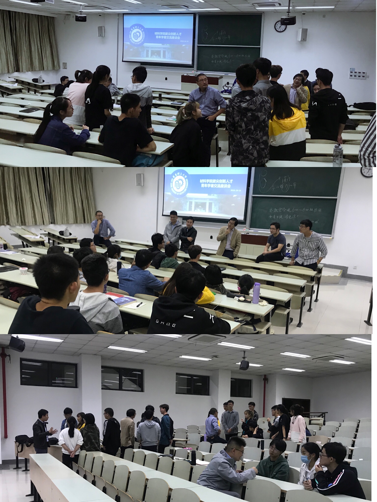 的学习及工作经历,以及对人生选择的思考。侯宇通过讲述自己选择研究方向的经历告诉大家,努力坚定地做好选择的方向就是对自己负责;王立权分享了自己从不在意学习到对科研产生兴趣的心态转变;刘鹏飞向大家传递了学习在华理、工作在华理和爱在华理的幸福;王浩轩讲述了自己在华理和在MIT交流时的所见所感,表达了自己对科研的认知。李欣欣、胡彦杰随后也分享了自己对科研工作的感悟,并为同学们详细介绍了“拔尖创新人才选拔”的推免时间、推免资格获取、推免流程等相关政策。