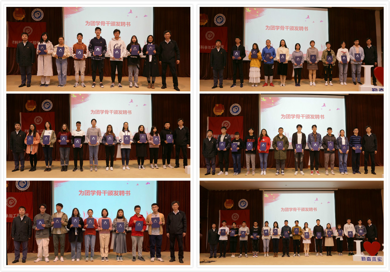 后,侯宇、戴诚安为学院新一届团学骨干颁发聘书。戴诚安在讲话中,向在场的团学骨干们提出三点期望:一要坚定信念、弘扬传统,争做开拓进取的领路人;二要勤于学习、善于学习,争做学习求知的带头人;三要围绕中心、明确使命,争做社会主义建设者和接班人。