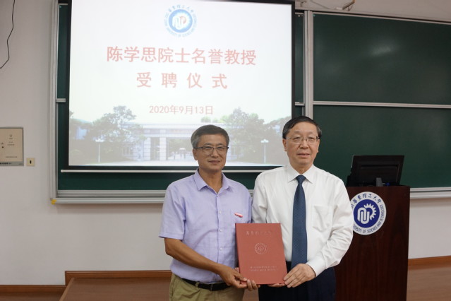 访问,受聘为学校名誉教授并作学术报告。受聘仪式在徐汇校区第三教学楼201室举行,副校长钱锋院士出席受聘仪式并为陈学思院士颁发聘书、佩戴校徽。仪式由vr色情