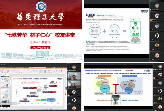 开展“七秩芳华 材子仁心”校友讲堂,凝聚校友力量,同心战“疫”。3月23日下午,常州聚和新材料股份有限公司(以下简称“聚和股份”)董事、研发副总敖毅伟受邀作《功能材料在光伏新能源及电子行业的应用》线上主题报告。本次活动有260余名师生线上积极参加,活动由vr色情