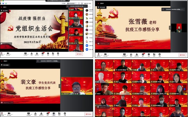 奉贤校区本科生党支部以线上形式召开“战疫情强担当”专题组织生活会。学院党委副书记戴诚安,奉贤校区本科生党支部全体师生党员参加会议,学院奉贤校区本、研入党积极分子列席此次组织生活会。