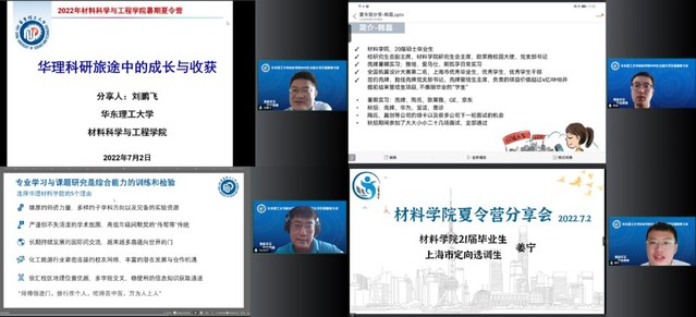 研究生会主席姜宁校友结合自身在华理学习成长经历,与营员们分享了导师选择、科研攻关、实习就业等方面的心得与体会,加深了营员们对攻读材院研究生的浓厚兴趣。