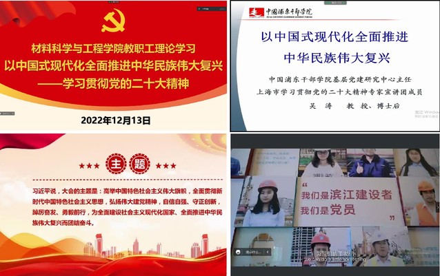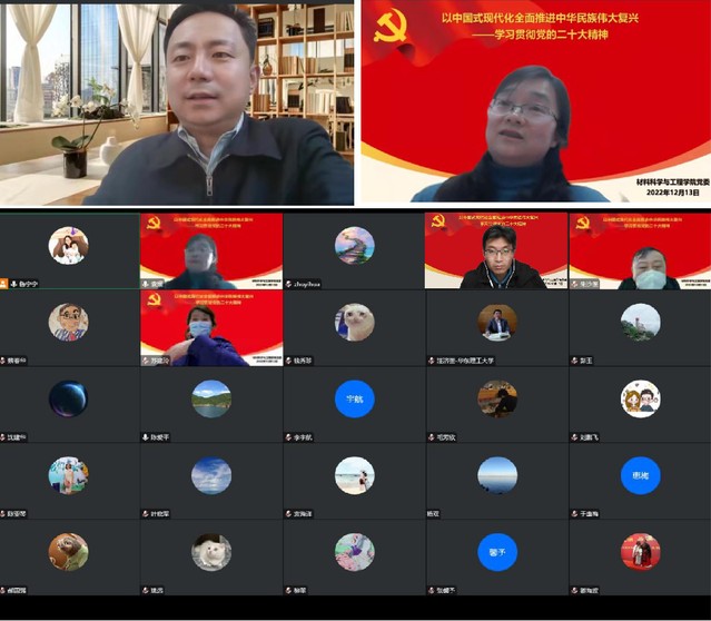 邀请中国浦东干部学院基层党建研究中心主任、上海市学习贯彻党的二十大精神专家宣讲团成员吴涛教授,作题为《以中国式现代化全面推进中华民族伟大复兴——学习贯彻党的二十大精神》线上辅导报告。学院全体教职员工、部分研究生党员参会,会议由学院党委书记袁媛主持。