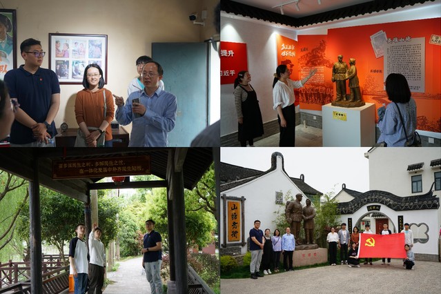 其中,在参观“明月山塘——毗邻党建启航地”过程中,大家了解到由于金山位于党的诞生地和启航地之间,因此毗邻党建展示馆的外观仿造了中共一大会址,馆门外河中仿制南湖红船,石库门和红船遥相辉映,寓意党的诞生和启航。通过参观馆内的相关资料和实物,大家充分了解到山塘村开辟了以毗邻党建引领长三角更高质量一体化发展的模式。