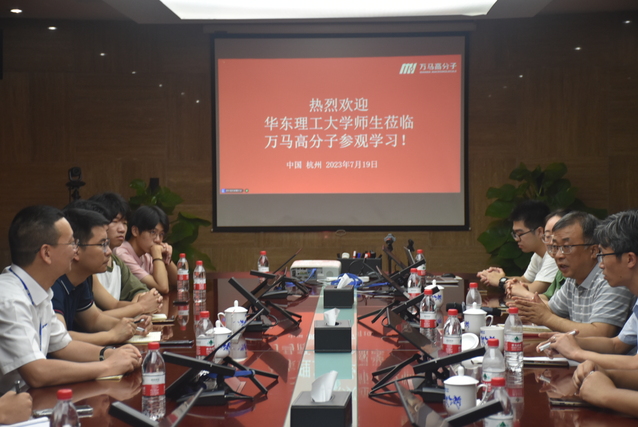高分子材料专业有高度的相似性与相容性,双方合作有很大的潜力,要进一步推动产学研一体化发展。学院高分子材料系主任周权谈到,希望同学们能抓住此次机会,在企业行的社会实践中多观摩、多体验、多学习,充分了解企业发展前沿需求,把自己培养成企业和国家需要的人才。学生代表就企业招聘、企业发展方向等问题咨询在万马就职的华理校友,双方进行了诚挚的交流。会后,实践团前往万马高分子超高压二期生产车间以及实验工厂参观。