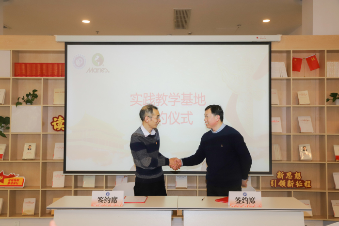 党委书记袁媛、上海马利画材股份有限公司董事长蒋熙洲以及总经理闫加伟共同为实践教学基地揭牌,此次合作标志着双方将正式建立起长期稳定的合作关系,推动产教融合深入开展。