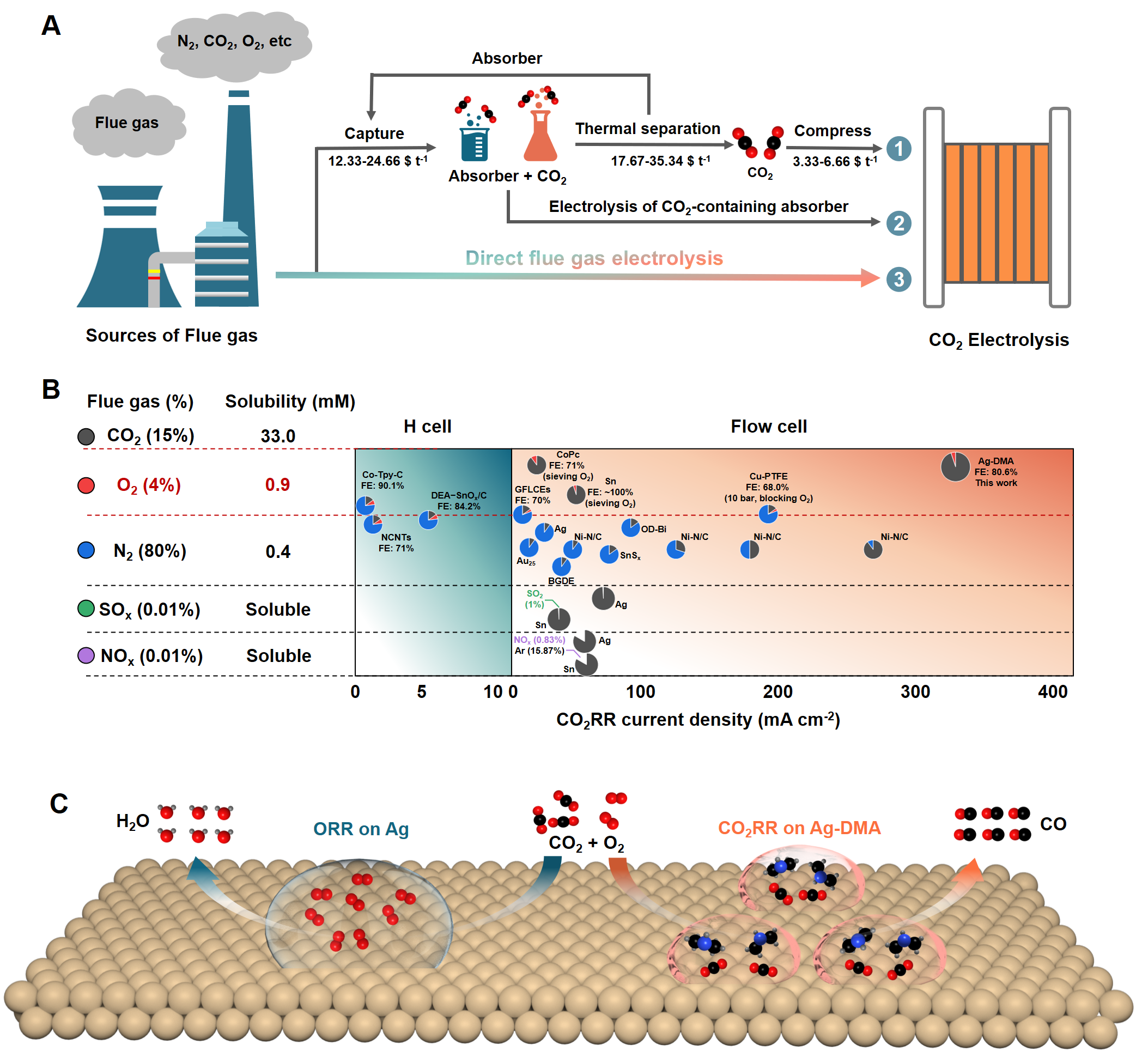 清洁能源材料与器件团队在直接模拟含氧烟道气电还原领域的最新研究成果。
