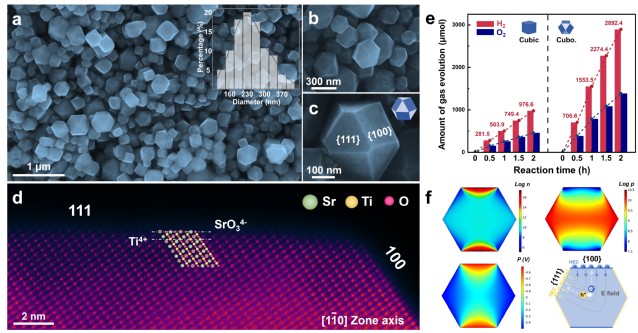 清洁能源材料与器件团队在光分解纯水制氢材料晶面结构设计与创制方面取得新进展,以晶态氧化物SrTiO3为模型材料,在固相合成体系中可控制备出大比例暴露优势晶面的高质量单晶催化剂。相关成果以“Crystal Facet Engineering on SrTiO3 Enhances Photocatalytic Overall Water Splitting”为题在线发表在《美国化学会志》(J. Am. Chem. Soc.)上。