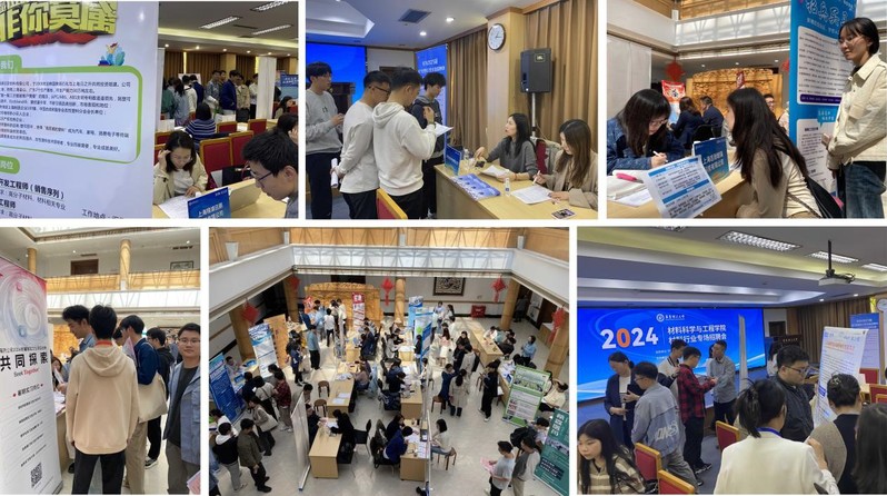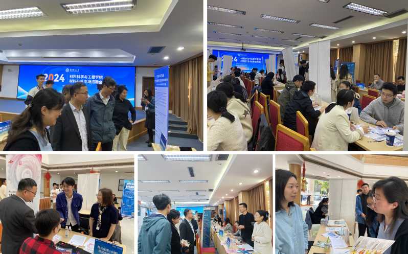 在徐汇校区逸夫楼演讲厅举办第十三届材料行业专场招聘会。学院党委书记袁媛、学院院长杜建忠、学院党委副书记兼纪委书记苏建玲、学院党委副书记戴诚安来到现场指导工作,并与用人单位、求职学生深入交流。
