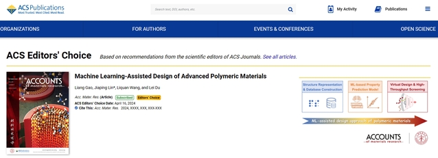 林嘉平教授团队受邀在美国化学会顶级期刊Accounts of Materials Research上发表题为“Machine Learning-Assisted Design of Advanced Polymeric Materials”的综述。由于该综述具有重要科学价值和引领性,入选美国化学会的ACS Editors' Choice栏目进行亮点报道。 vr色情