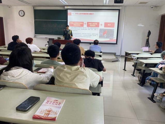 随后,刘款款为大家详细介绍了大学生征兵入伍的政策以及要求,并回答大家关于大学生征兵入伍的问题。他谈到国防教育的重要性,并鼓励大家积极参军服役。新时代的青年应该承担起保卫祖国的神圣职责,用自己的实际行动为国家的安全稳定贡献力量。