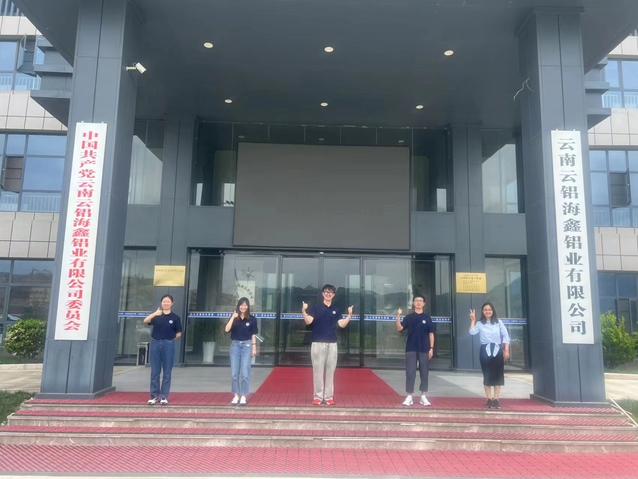 当天师生一行又前往云南云铝海鑫铝业有限公司调研。在公司副总施燕飞的带领下,参观了公司炼化氧化铝矿石的电解铝工艺生产线,了解从氧化铝中提炼铝的技术原理及工艺流程,并观摩了高温熔融物料在生产过程中的状态。施总介绍了云南铝业集团和云铝海鑫公司的发展历程,铝的提炼过程、产物及进一步加工方向,着重强调了云铝“绿色铝材一体化”的先进发展理念。师生还参观了云铝海鑫高清仿真信息平台,学习了公司在信息集成、智慧生产、安全监管等方面的成果,了解了公司数字化、信息化的发展方向。