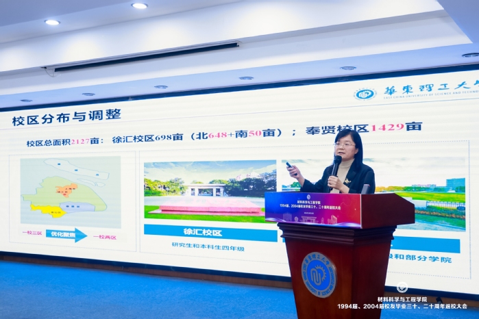 袁媛代表全院师生对校友返校表示热烈欢迎,对校友们一直以来对学院发展的关心与支持表示感谢。她从学科建设、人才队伍、科研基地、重点建设方向、学生培养、先进材料大楼建设、校企合作、校友活动等方面介绍了学院发展现状。她谈到,因为今年自己也刚好毕业30周年,特别能体会大家的心情,虽然身处各行各业,但都有同一个身份“华理人”,华理是大家最初梦想的起点。希望大家共同打造“华理生命共同体”,校友之间、校友与学校、学院之间加强沟通交流,互助互补,齐心携手,同心筑梦,共筑“材料梦”、共筑“华理梦”、共筑“中国梦”。她向校友们表达了衷心的祝福,欢迎大家常回家看看。