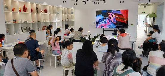 大家首先观看了中国陶瓷发展历史以及陶瓷制作72道工序的科普视频,一起见证陶瓷文化的发展。72道工序从选泥、塑形到烧制、上釉,每一步都蕴藏着智慧与创造,让大家对对陶瓷制作釉料、模具、工具等有了基础的认识,被其中蕴含的丰富知识和精湛技艺所折服。