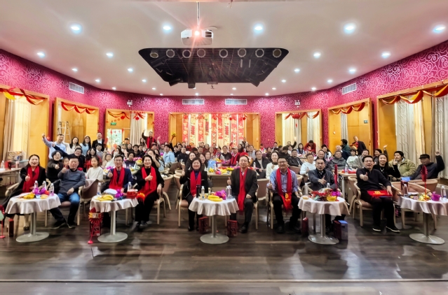 在工会八角亭二楼举办迎新联欢会。学院党委书记袁媛、院长杜建忠及其他党政领导班子成员与全体教职工及家属、退休教职工齐聚一堂。