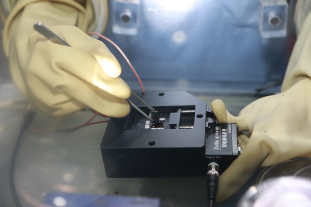 图4. 团队成员在测试钙钛矿太阳能电池光电性能