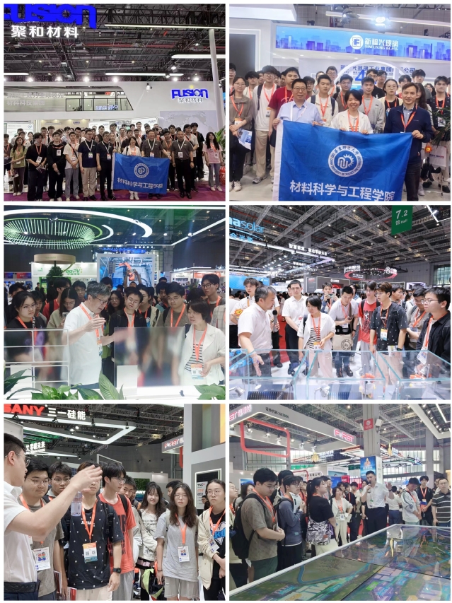6月12日, vr色情 无机非金属材料工程专业的60余名本科生,在曾惠丹教授和刘学良老师的带领下,前往全球最大的光伏行业盛会——第十八届SNEC国际太阳能光伏与智慧能源大会观展展会上展示的前沿技术成果,尤其是关键材料创新,成为学子们关注的焦点,企业专家们的现场“授课”更是引发了热烈反响,大会现场成为学生们生动的“移动课堂