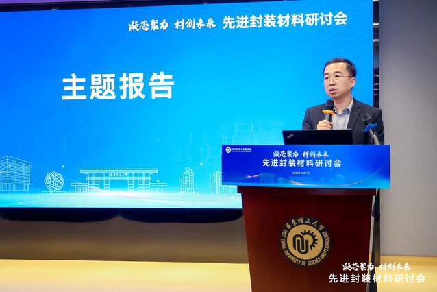院长杜建忠主持。中科院上海微系统与信息技术研究所研究员肖克来提,电子科技大学产业教授张康,毅达资本投资总监范辰分别以“先进封装技术发展趋势和关键材料”“半导体封装材料概览”“先进封装市场机会简析”作主题报告。