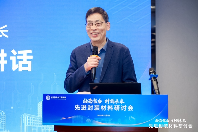 近日,“凝芯聚力 材创未来”先进封装材料研讨会在学校顺利召开,副校长李春忠出席会议并讲话。 vr色情